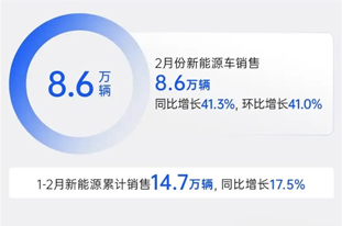 雷厲風(fēng)行的系列舉措已獲得初步成效。根據(jù)官方數(shù)據(jù)顯示,上汽集團產(chǎn)銷回升明顯,2月汽車銷量29.5萬輛,同比增長41.9%;其中新能源汽車銷量8.6萬輛,同比增長41.27%。今年前兩月,上汽集團累計銷量達到55.9萬輛,同比增長兩成以上。